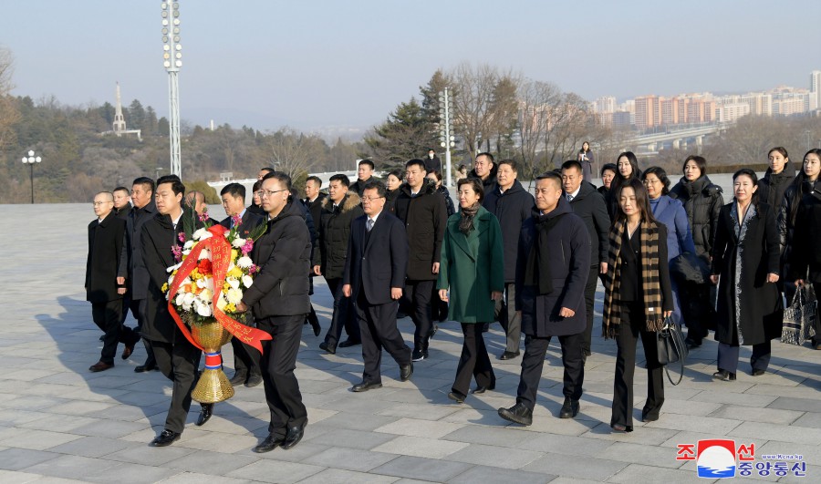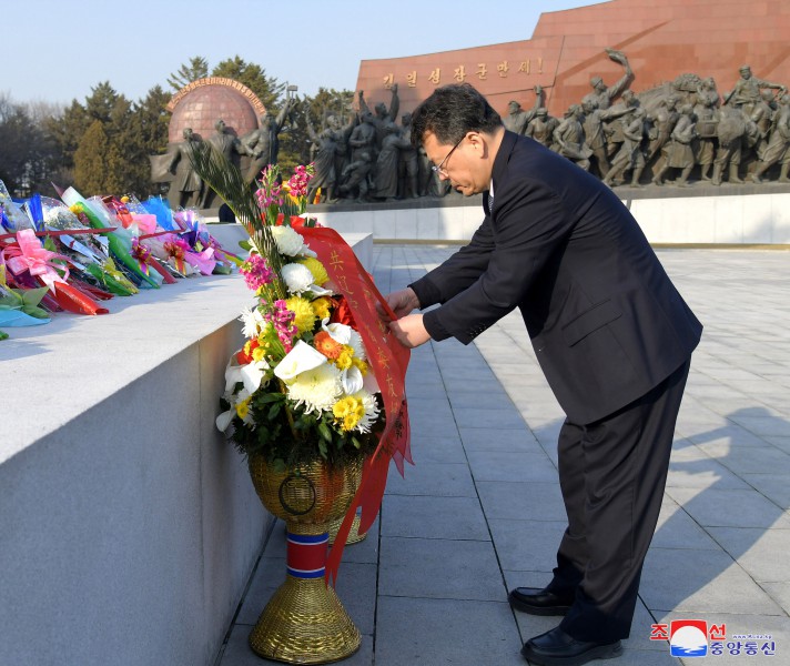朝中社平壤1月30日電 正在來(lái)朝訪(fǎng)問(wèn)的以中國共產(chǎn)黨遼寧省委員會(huì )常務(wù)委員、宣傳部長(cháng)劉慧晏為團長(cháng)的中國遼寧省文化代表團29日向矗立于萬(wàn)壽臺崗上的偉大領(lǐng)袖金日成同志和偉大領(lǐng)導者金正日同志銅像敬獻了花籃。(完)
