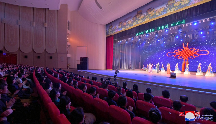 朝中社平壤2月1日電?。玻埃玻茨昶饺馈皻g樂(lè )春節”迎春文藝演出1月31日在烽火藝術(shù)劇院舉行。