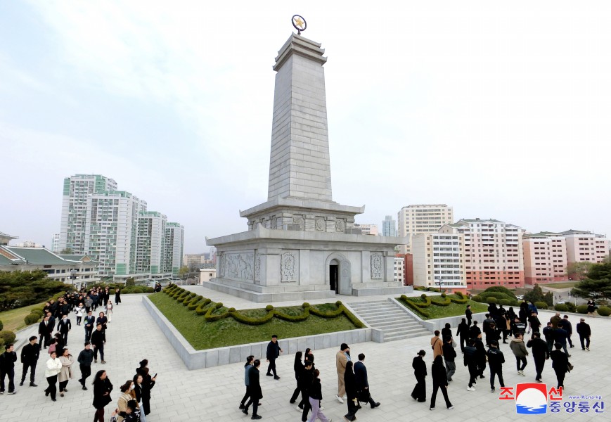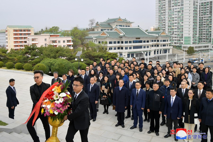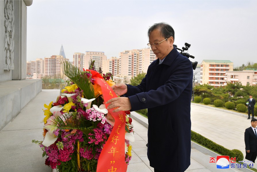朝中社平壤4月11日電 為參加“朝中友好年”開(kāi)幕式聯(lián)袂演出前來(lái)訪(fǎng)問(wèn)朝鮮的中國藝術(shù)團10日向友誼塔敬獻了花籃。
