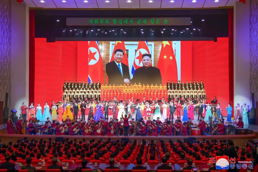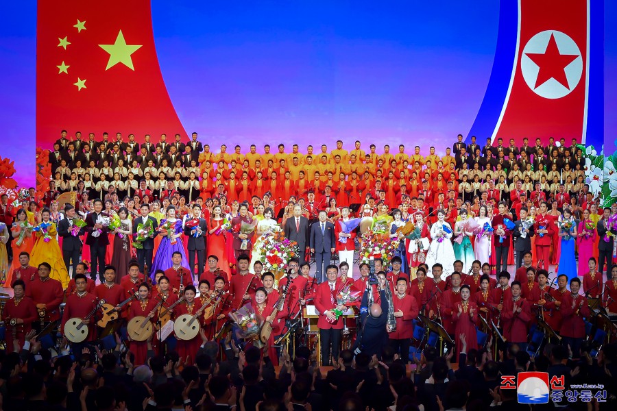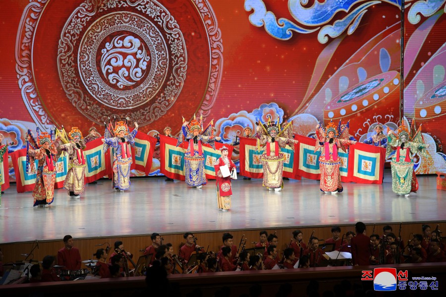 演出以中國歌曲《紅旗飄飄》、朝鮮歌曲《我們的國旗》和《朝中友誼萬(wàn)古長(cháng)青》壓軸,大大顯示了朝中友好團結的戰無(wú)不勝和不變性。表演者慷慨激昂地謳歌了兩黨兩國政府和人民的意志、歷史、未來(lái)——朝中友誼將跨年代牢不可破。
