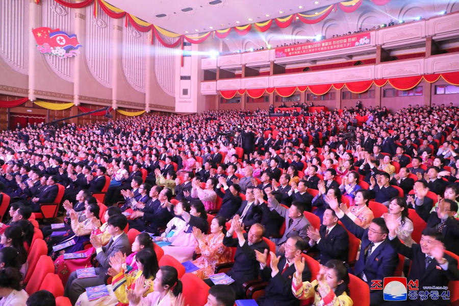 以中國共產(chǎn)黨中央委員會(huì )政治局常務(wù)委員會(huì )委員、中華人民共和國全國人民代表大會(huì )常務(wù)委員會(huì )委員長(cháng)趙樂(lè )際為團長(cháng)的中華人民共和國黨政代表團成員和中國藝術(shù)團成員、中國駐朝鮮特命全權大使王亞軍和使館成員以及在朝鮮逗留的中國客人參加了開(kāi)幕式。
