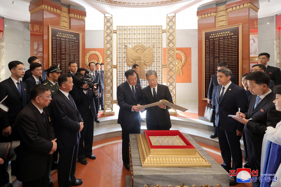 趙樂(lè )際在留言簿上留言:“銘記歷史,緬懷先烈,捍衛和平,傳承友誼?!保ㄍ辏?/p>www.kcna.kp (主體113.4.13.)