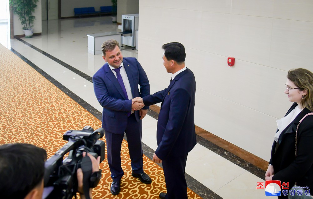 朝中社平壤6月4日電 以俄羅斯青少年聯(lián)合國家理事會(huì )主席格里戈里·佩圖什科夫為團長(cháng)的俄羅斯青年友好代表團3日乘班機抵達平壤。
