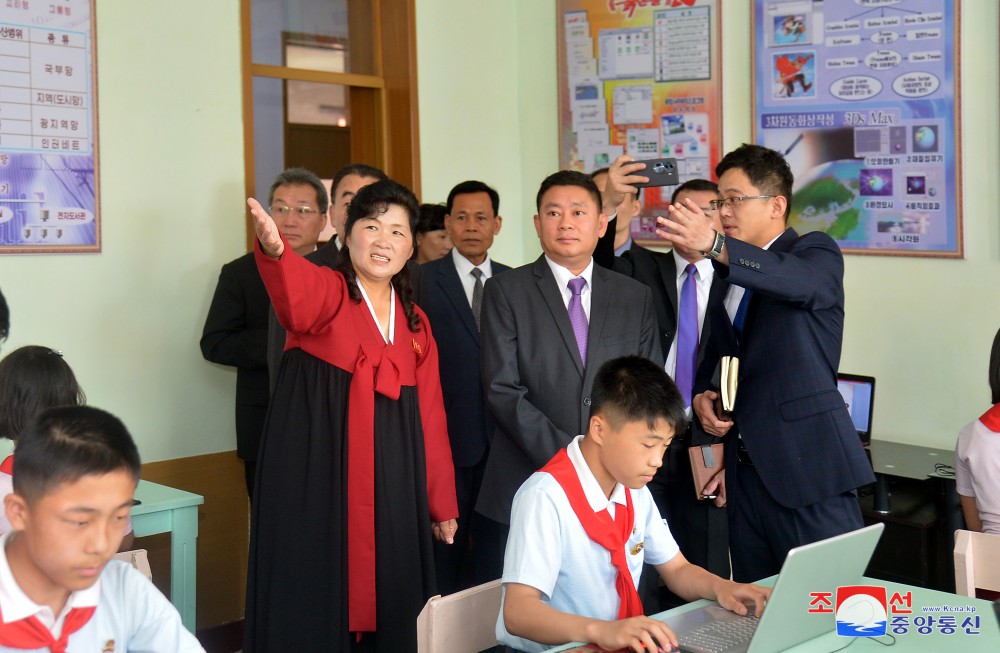 朝中社平壤6月25日電 在朝鮮民主主義人民共和國和老撾人民民主共和國建立外交關(guān)系50周年之際,老撾駐朝鮮臨時(shí)代辦通·西維萊和使館成員24日參觀(guān)了朝老友好大同江區清流高中。