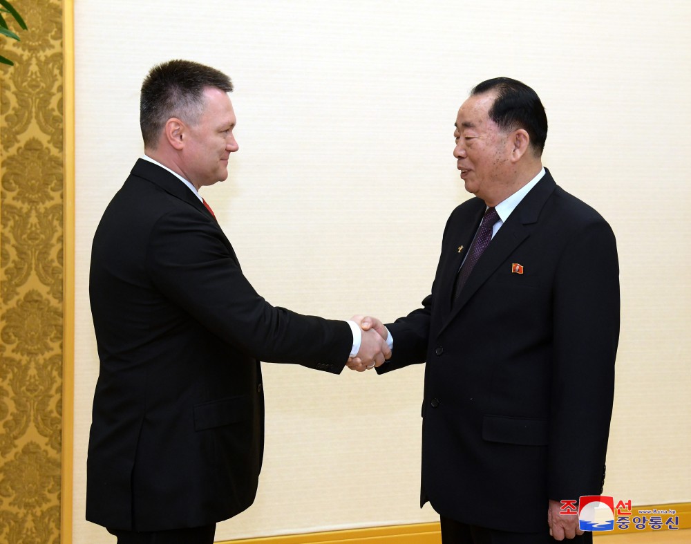 朝鮮民主主義人民共和國中央檢察院檢察長(cháng)金哲元、外務(wù)省副相金正奎和俄羅斯駐朝鮮特命全權大使亞歷山大?馬采戈拉會(huì )見(jiàn)時(shí)在座。(完)