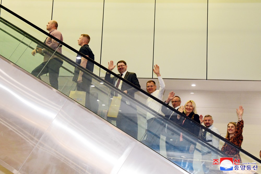 朝鮮民主主義人民共和國外務(wù)省副相金正奎、有關(guān)部門(mén)干部到平壤國際機場(chǎng)歡送白俄羅斯共和國外交部長(cháng)和一行啟程。(完)