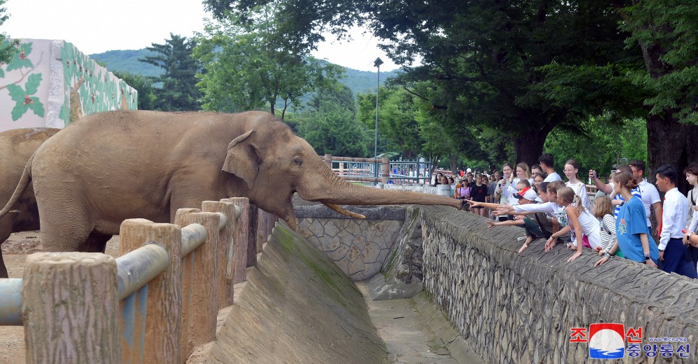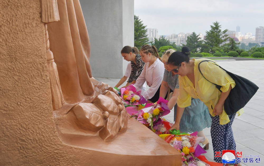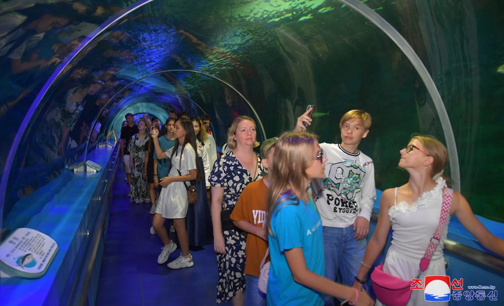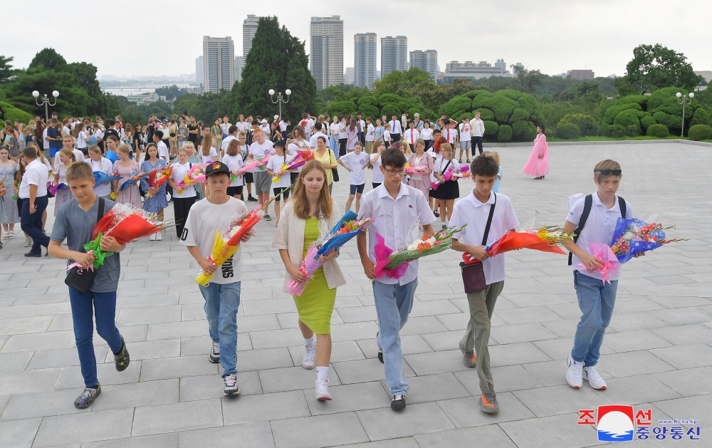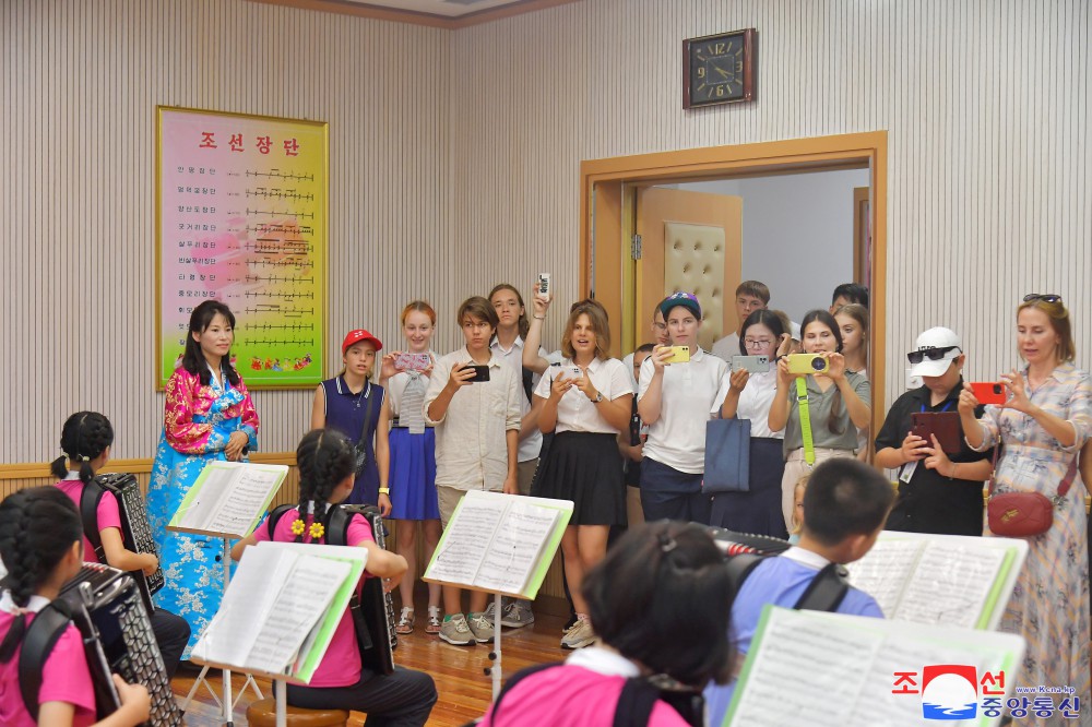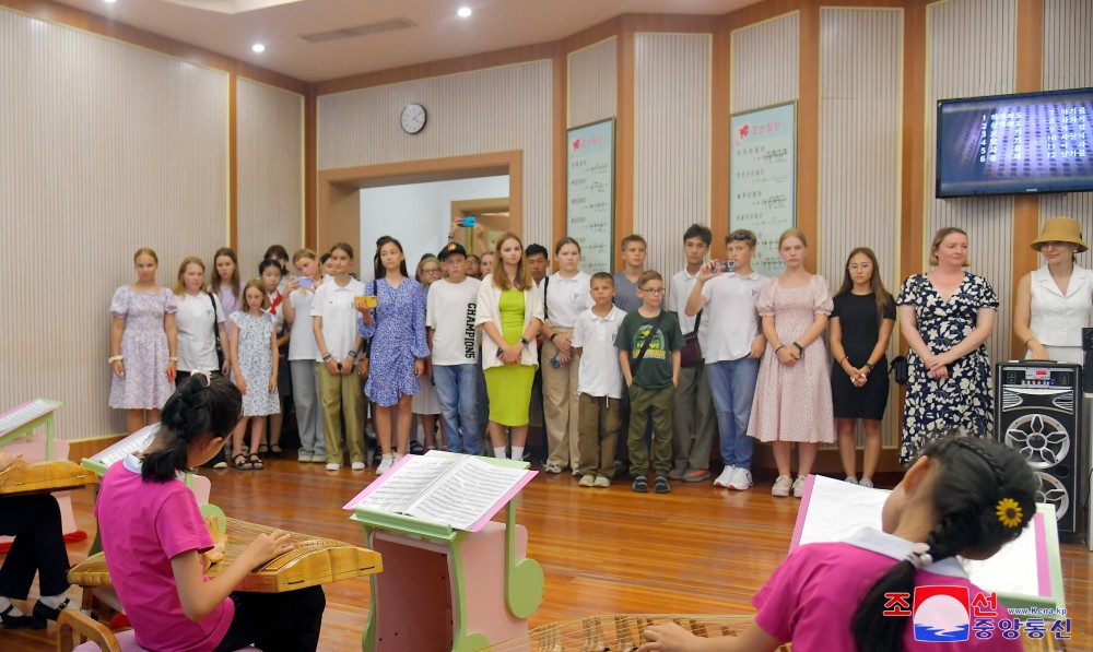 朝中社平壤8月2日電 正在參加朝俄少年友好夏令營(yíng)活動(dòng)的俄羅斯學(xué)生少年夏令營(yíng)代表團1日參觀(guān)了萬(wàn)景臺學(xué)生少年宮。