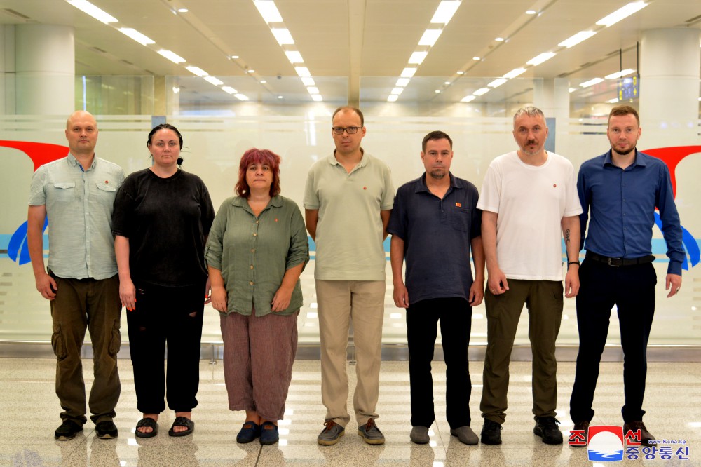 朝中社平壤8月2日電 以秘書(shū)長(cháng)米哈伊爾·潘琴科為團長(cháng)的東歐與中亞地區主體思想研究協(xié)會(huì )國際聯(lián)盟代表團1日乘機抵達平壤。(完)