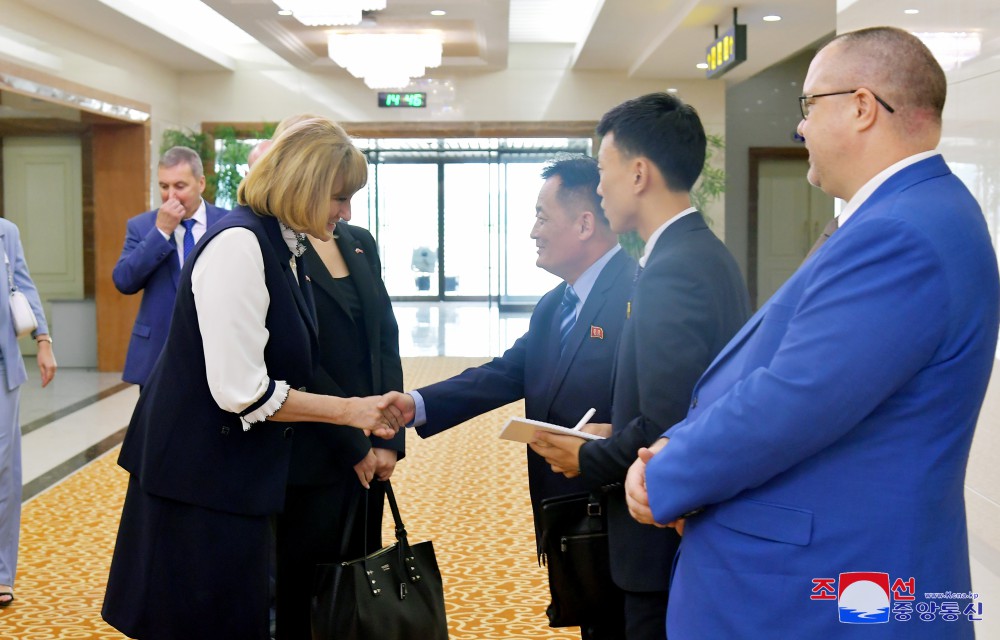 朝中社平壤8月27日電 以濱海邊疆區政府副總理兼教育部長(cháng)埃爾維拉·沙莫諾娃為團長(cháng)的俄羅斯濱海邊疆區教育工作者代表團26乘機抵達平壤。(完)