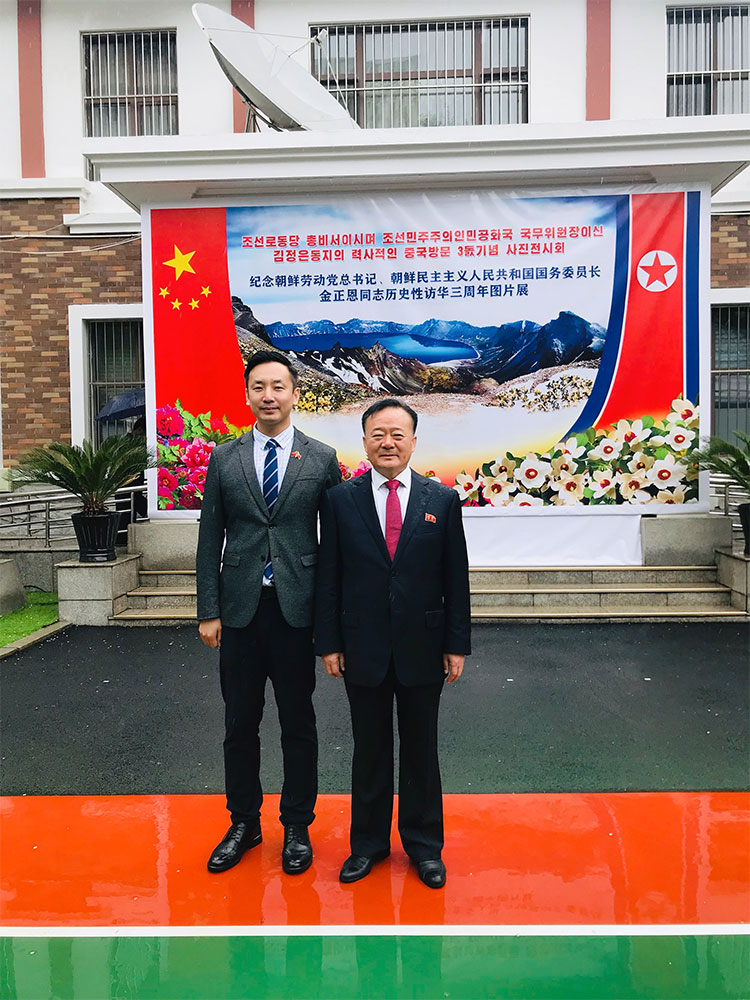 2021年5月7日,紀念朝鮮勞動(dòng)黨總書(shū)記、朝鮮民主主義人民共和國國務(wù)委員長(cháng)金正恩同志歷史性訪(fǎng)華三周年圖片展,在朝鮮駐沈陽(yáng)總領(lǐng)事館隆重舉行,遼寧省省委秘書(shū)長(cháng)王健同志率領(lǐng)省市領(lǐng)導受邀出席并致辭,朝鮮駐沈陽(yáng)總領(lǐng)事館總領(lǐng)事具永赫同志致辭后圖片展開(kāi)始。金日成金正日基金會(huì )會(huì )員、沈陽(yáng)山和大海進(jìn)出口貿易有限公司總經(jīng)理趙斌先生受邀出席,并受到具總領(lǐng)事以及其它各位領(lǐng)事的熱烈歡迎,與具總領(lǐng)事進(jìn)行簡(jiǎn)單交流并合影留念!按照中朝兩國領(lǐng)導人數次會(huì )面達成的重要共識,加強中朝兩國民間以及年輕人之間的交流,趙斌先生愿為維護好,鞏固好,發(fā)展好中朝傳統友誼與合作關(guān)系多做貢獻!