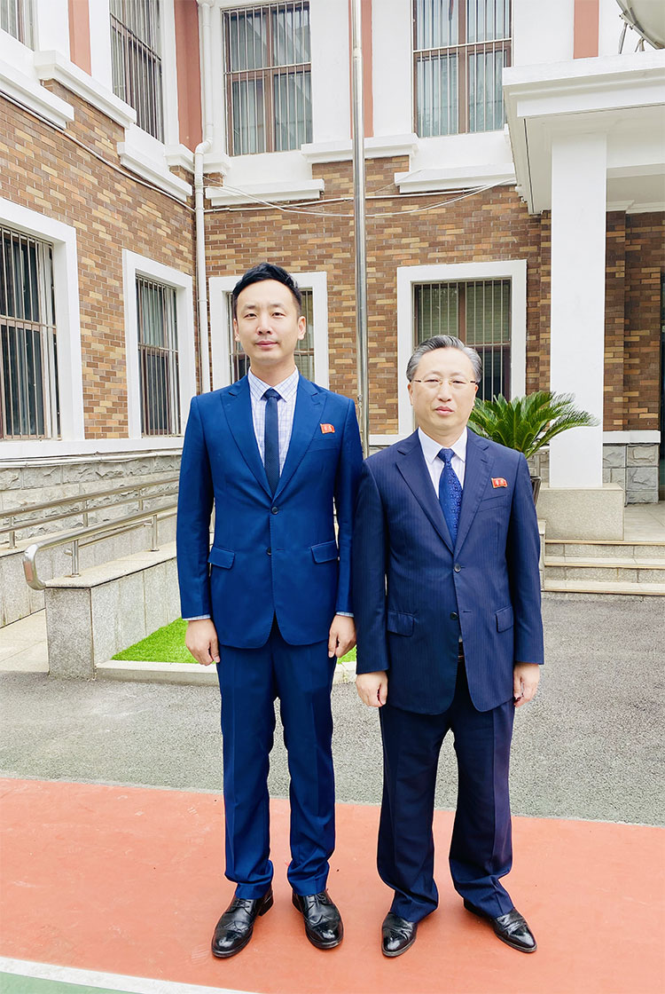 7月8日,朝鮮人民的偉大領(lǐng)袖金主席逝世27周年紀念日!朝鮮的國家追悼日!上午,金日成金正日基金理事會(huì )成員、沈陽(yáng)山和大海進(jìn)出口貿易有限公司總經(jīng)理趙斌,受邀來(lái)到朝鮮駐沈陽(yáng)總領(lǐng)事館,向朝鮮兩位偉人肖像前敬獻花籃鞠躬致敬!并與金永日副總領(lǐng)事互致問(wèn)候。趙斌表示,愿為維護好、鞏固好、發(fā)展好中朝傳統友誼與合作關(guān)系多做貢獻!